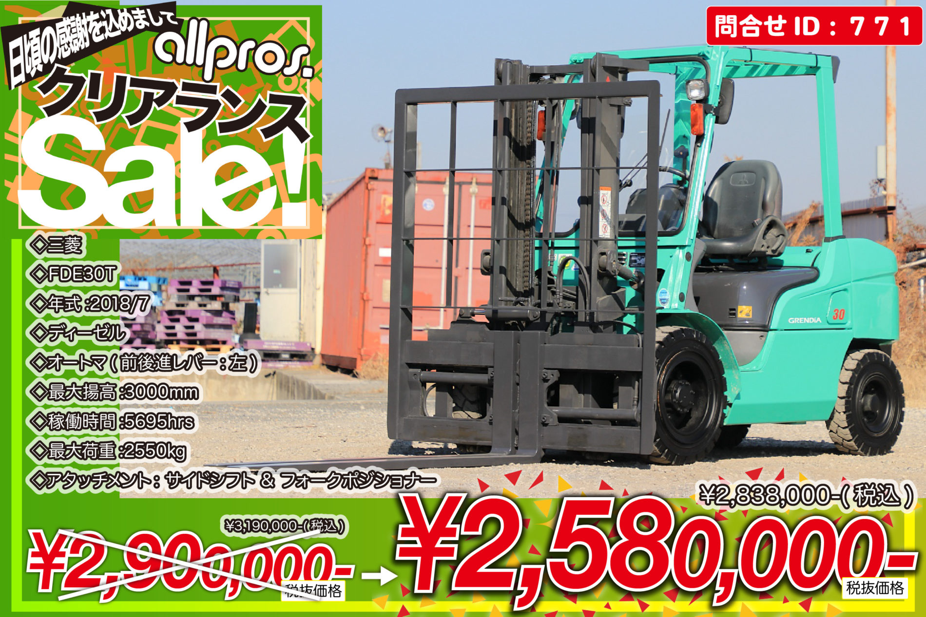 771 三菱 FDE30T販売中整備塗装済完成車