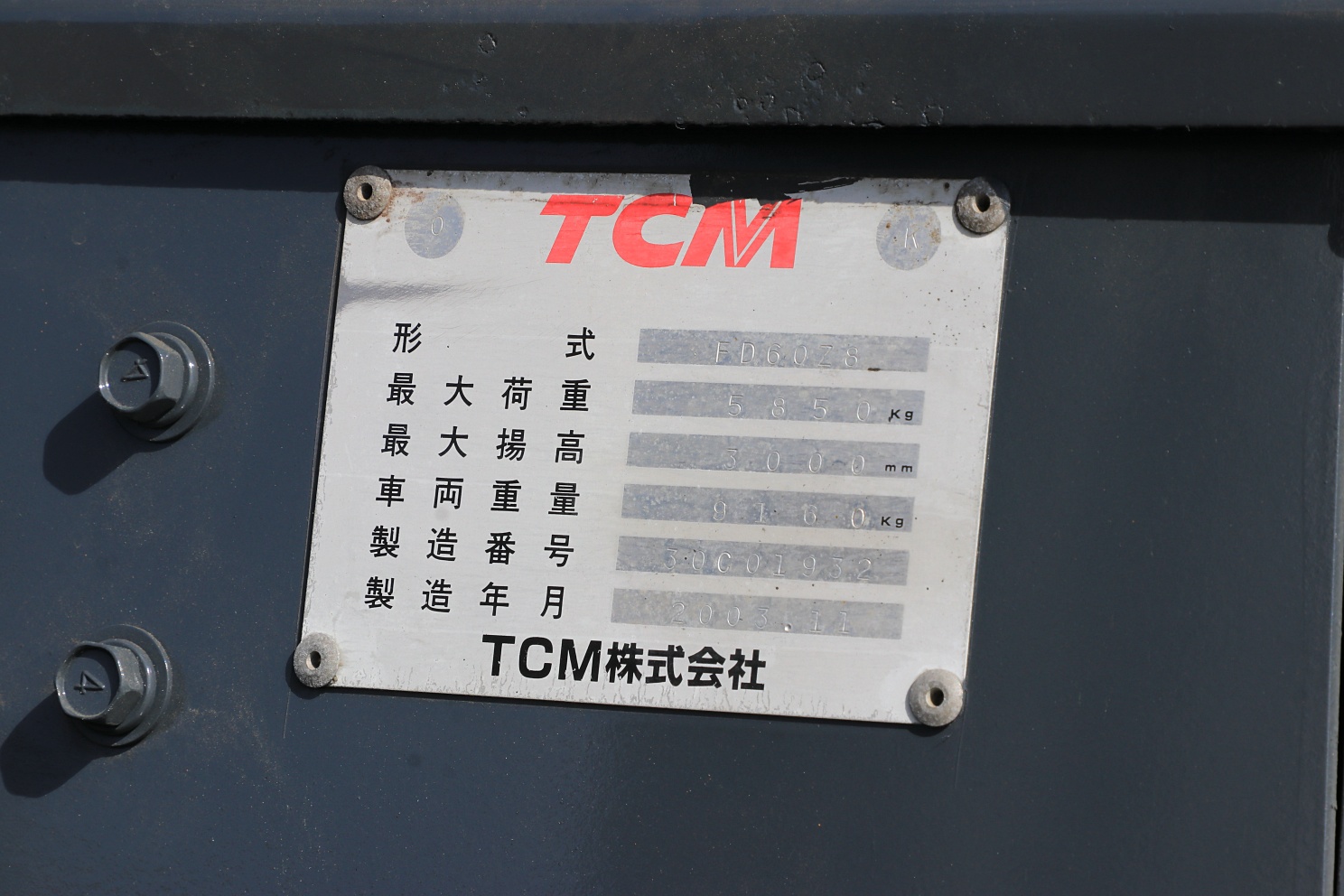 852 TCM FD60Z8販売中整備塗装済完成車 ディーゼル/6t/サイドシフト、ダブルタイヤ
